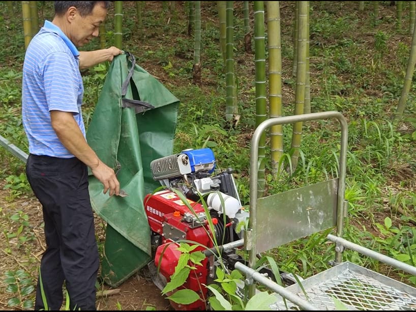 講至興頭,阮寶根揭開一臺機器上的油布,向隊員們介紹起它的作用。原來,在機械化之前,竹子都是由村民用自己的肩扛下山,過程又累又慢,又因為山路崎嶇,存在著很大的安全隱患。但是在機械化之后,借助履帶運輸機,也就是被綠油布罩住的這臺機器,村民只需要把竹子放在運輸機上并將其固定好,竹子就能順著履帶輕松到達山腳,大大提高了生產(chǎn)效率。除了履帶運輸機,隊員們還見到了太陽能滅蚊燈。山中昆蟲繁多,有滅蚊燈在,村民的工作環(huán)境會更加舒適些。