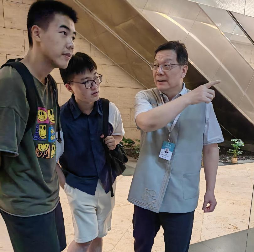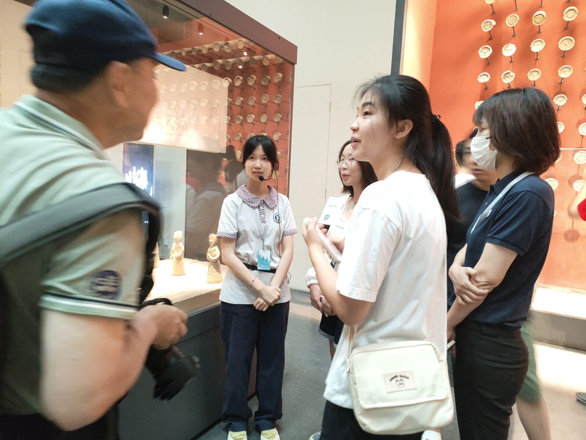 (圖為六朝博物館內與工作人員的討論 陳可 攝)
