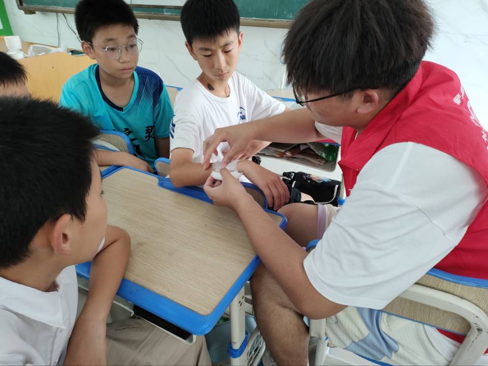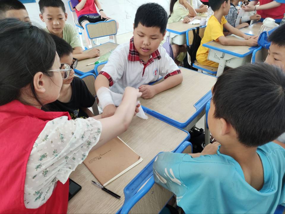 隨后實踐隊隊員們分別實際教授學生螺旋包扎法。