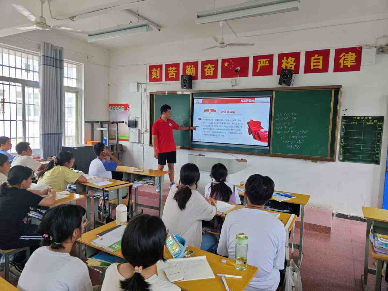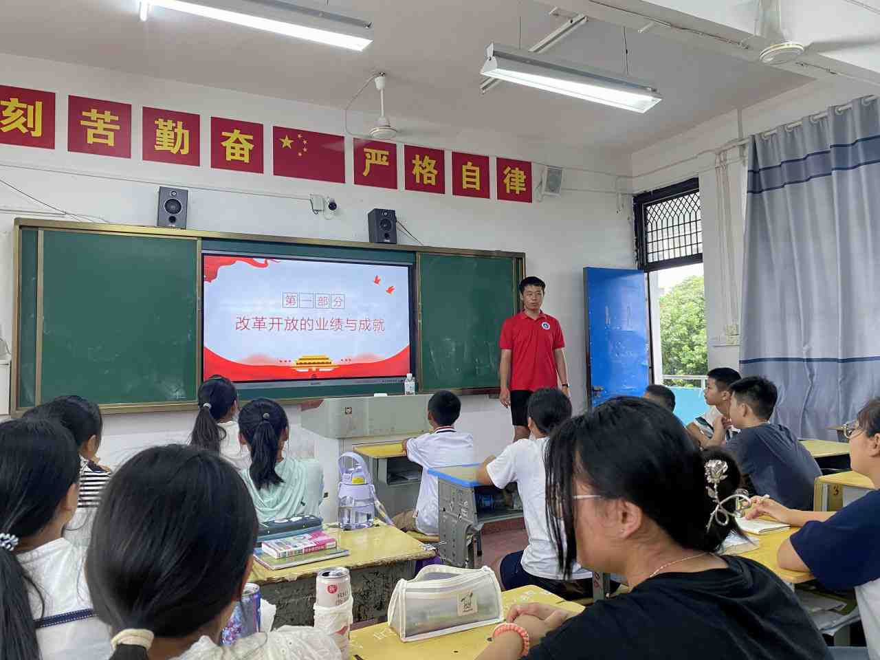 改革開放是我國長期堅持的政策之一。改革開放四十多年來,我國經濟實力和綜合國力得到了顯著的提高。所以學習改革開放中的精神就顯得尤為關鍵。2023年7月17日,赴池州市香隅鎮初級中學志愿服務隊成員徐文瀚帶領同學們深入學習了改革開放精神。