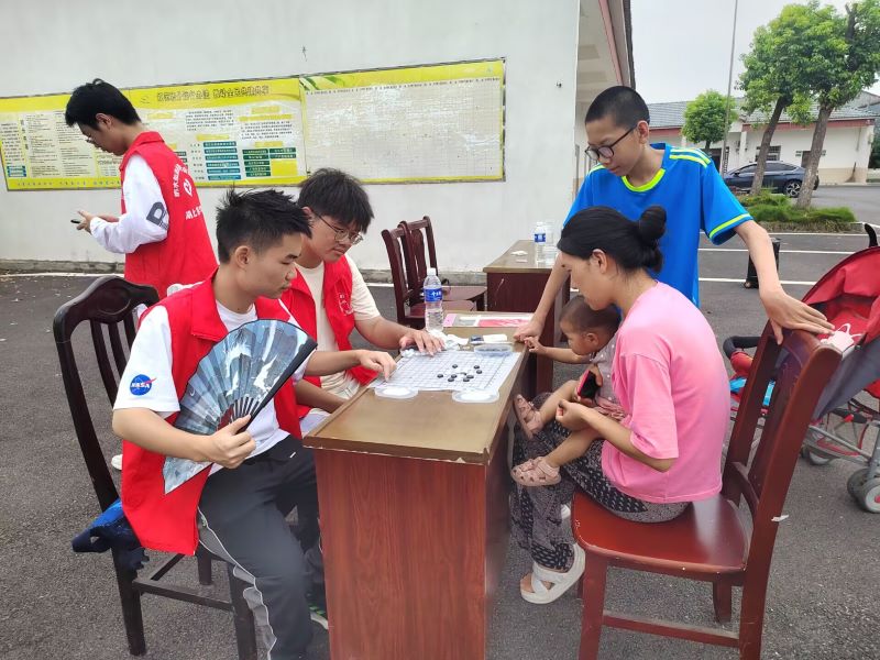圖為母親帶著孩子與隊(duì)員下棋。 崔永航 攝。