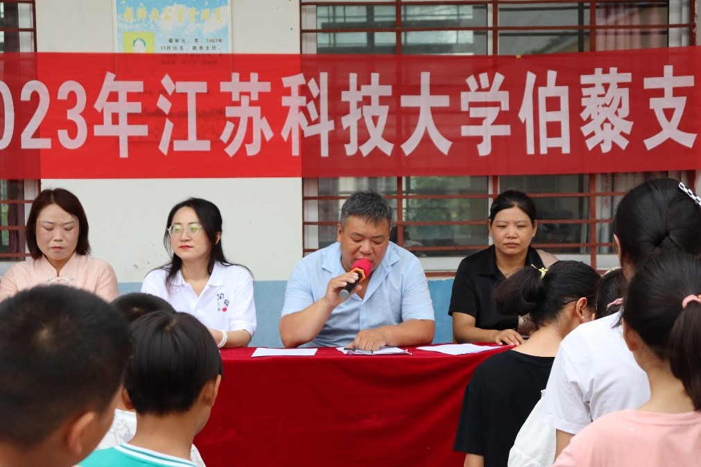 2023年7月13日上午,江蘇科技大學(xué)2023伯藜支教團(tuán)在支教地河南駐馬店上蔡縣大翟小學(xué)正式開展支教活動開班儀式。支教團(tuán)帶隊老師與當(dāng)?shù)匦iL、老師們、學(xué)生家長與學(xué)生共同出席了此次儀式。此次儀式旨在與學(xué)校、家長們一起溝通支教期間學(xué)生們的安全、學(xué)習(xí)、飲食等問題,并確定最終參加支教的具體學(xué)生名單,確保后面支教活動的順利進(jìn)行。