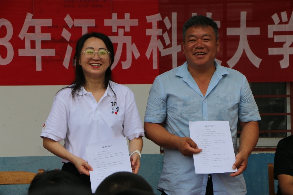 (圖為支教帶隊老師與當(dāng)?shù)貙W(xué)校校長完成簽約儀式。袁智豪拍攝。)