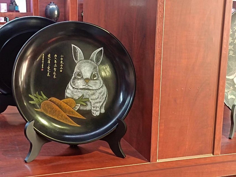在參觀過程中,一件刻有白兔送喜圖的作品吸引了隊員們的注意,不同于大部分藝術品古色古香的韻味,這一活潑可愛的形象打破了隊員們對傳統藝術品的認知。原來,梁子黑陶將眼光投向了黑陶的實用化、訂制化,刻陶大師們除了將傳統元素與黑陶相融合,同時也在根據客戶的需要,將現代化元素如十二生肖、卡通形象等融入黑陶,賦予黑陶全新的生命力。