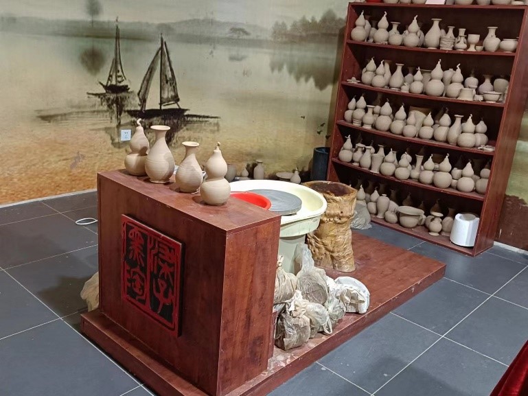 隨后,實踐隊員跟隨工作人員來到一處工作臺,這便是制陶匠人向游客展示黑陶制作過程的地方。工作人員介紹道,除了在博物館內展示黑陶制作過程,梁子黑陶還積極組織陶藝進校園活動。目前,梁子黑陶文化園已經成為多所大、中、小學生校外實驗基地。不僅讓大家體驗到制陶樂趣,同時也拉近了人們與非遺之間的距離,讓更多的人領略非物質文化遺產所散發的獨特魅力,了解非遺,接觸非遺,在人們參與的過程中提高社會的非遺保護意識,弘揚中華民族的傳統文化,感知中華傳統文化的魅力。