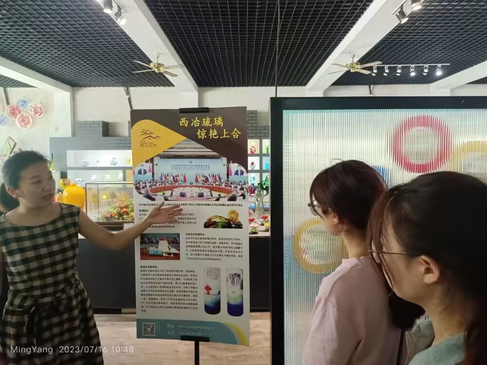 圖為工作人員為實踐隊員們介紹國禮琉璃 通訊員 邵明陽 供圖