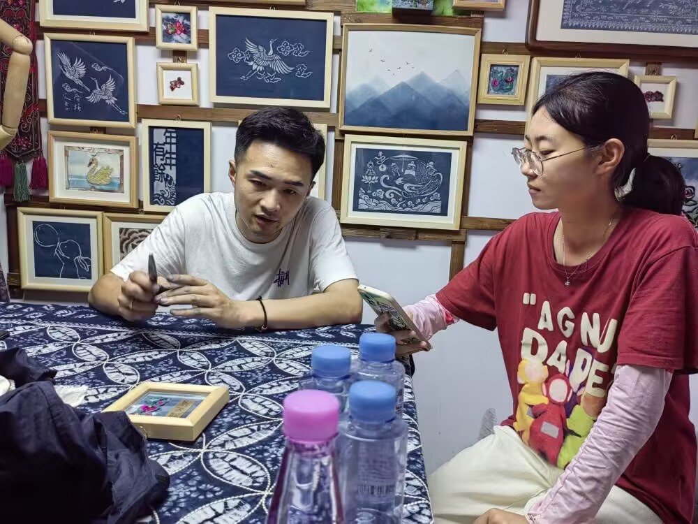 絲竹悠悠,唱不完慢詞清曲;墨香濃濃,描不盡煙波畫船。燦爛絢麗的傳統(tǒng)文化是國人的驕傲、國家的底氣,也是中華民族的靈魂。中共中央發(fā)文呼吁加強(qiáng)非物質(zhì)文化遺產(chǎn)保護(hù),為了積極響應(yīng)這一號(hào)召,2023年7月15日,曲阜師范大學(xué)地理與旅游學(xué)院“非遺”探查實(shí)踐隊(duì)隊(duì)員來到山東淄博“齊梅吹雪”工作室,了解并體驗(yàn)藍(lán)印花布工藝的制作過程,體驗(yàn)非遺手工藝人精神的難得,助力新時(shí)代下非遺手藝的傳播和創(chuàng)新。