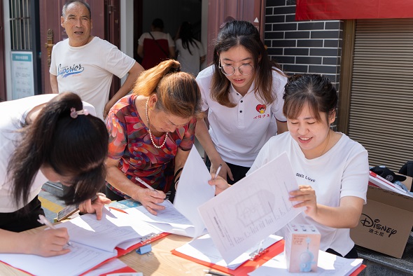 為了更好地把握欠發(fā)達(dá)地區(qū)居民對(duì)于先天性心臟病的了解程度并更好地規(guī)劃未來(lái)對(duì)欠發(fā)達(dá)地區(qū)居民進(jìn)行科普的知識(shí)側(cè)重,隊(duì)員事先制作了調(diào)查問(wèn)卷并將其分發(fā)給當(dāng)?shù)鼐用襁M(jìn)行填寫(xiě)。在商洛丹鳳,部分居民仍受限于文化程度的有限,不能認(rèn)字更無(wú)法填寫(xiě)問(wèn)卷,而此時(shí),隊(duì)員們主動(dòng)向他們讀出題目并用通俗的話語(yǔ)解釋題目意思,幫助居民完成調(diào)查問(wèn)卷。最后,團(tuán)隊(duì)總共收集問(wèn)卷76份,為接下來(lái)“心”火“鄉(xiāng)”傳團(tuán)隊(duì)開(kāi)展工作鋪下了堅(jiān)實(shí)的基礎(chǔ)。