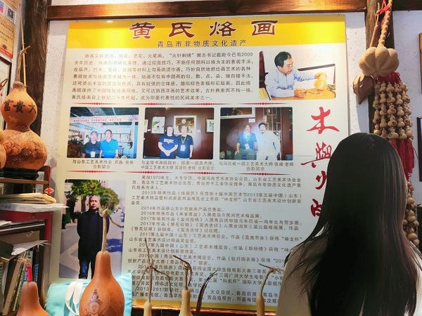 黃氏烙畫為青島市級非遺,是青島民間美術類的非遺代表之一。烙畫古稱“火針刺繡”,又稱“火筆畫”、“烙花”,是用燒熱的烙鐵在物體上熨出烙痕作畫,以鐵為筆,高溫代墨,在竹木、紙張、葫蘆、皮革、絲織物品上創作出人物、山水、花鳥蟲魚等的工藝品,其線條簡潔、自然、明快、流暢。相傳烙畫起源于秦朝,距今已有兩千多年的歷史,經過千余年不斷發展完善和文人墨客的推廣使之成為中國畫中的一個珍貴畫種。