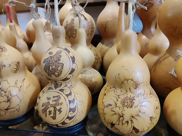 如果說葫蘆作紙,那烙鐵就是筆了。唯一不同于畫筆的是,這支“筆”在用的時候會滋滋地冒著熱氣和白煙。根據圖案不同,選擇不同筆觸的烙鐵筆。這些烙鐵筆不是現成的,而是買來銅質鐵棒,根據自己的偏好燒制打造的。烙畫的過程與書法有幾分相似之處,烙畫就是褐色的素描,和毛筆繪畫同源不同體。行云流水,姿態橫生。烙筆的走峰間有著書法的神韻。意在筆先,落筆成型,這同時也是烙畫的精髓所在。對于傳承人來說,每烙一個葫蘆,都是一次藝術創作?此坪唵蔚木條,但從構思到創作需要大量的時間,精神需要時刻保持高度集中。這筆法的輕重緩急,都要細細琢磨,多次斟酌,一旦下筆,就不能再改動。