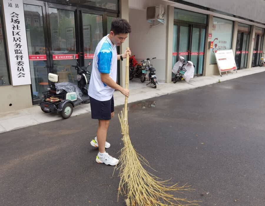 圖為實踐隊員在打掃黨群服務中心廣場 通訊員 張藝萱 攝
