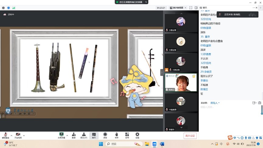 最后,老師向同學(xué)們講述三十年前、十年前和現(xiàn)在的潮州音樂普及程度的變化,引導(dǎo)同學(xué)們思考文化傳承的方法途徑及重大意義,鼓勵(lì)學(xué)生通過上網(wǎng)或者逛線下博物館來(lái)了解更多正在走下坡路的潮汕傳統(tǒng)文化。