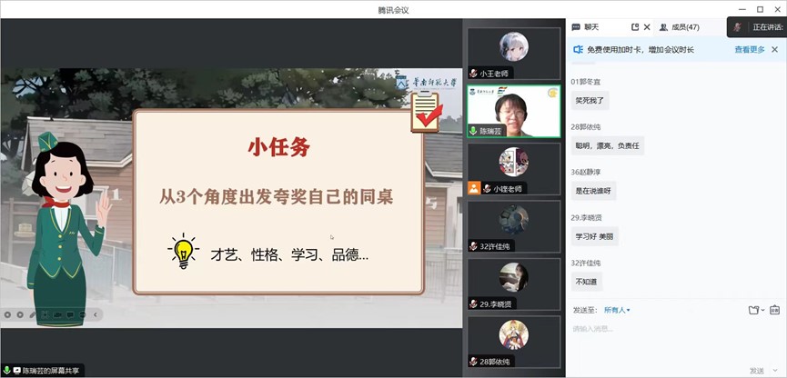 上午9:30,陳瑞蕓老師的《趕跑容貌焦慮》課程拉開序幕。課程初始,老師首先向同學(xué)們提問“是否有容貌焦慮”,在得到多數(shù)同學(xué)們的肯定回復(fù)后,便邀請(qǐng)同學(xué)們一起參加“美麗公園闖關(guān)游戲”。
