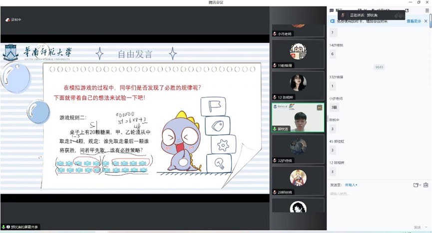 2023年7月16日,華南師范大學(xué)數(shù)學(xué)科學(xué)學(xué)院2104支部星瀾隊(duì)的支教老師們帶領(lǐng)汕頭市銅盂中學(xué)初一年級(jí)的學(xué)生在線上順利開展夏令營(yíng)的第一天課程。