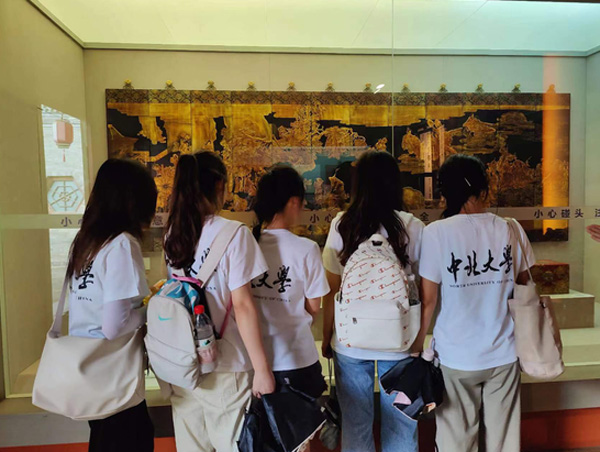 隨后,實踐團拜訪了青龍古鎮民間藝術博物館,山西民間藝術系列展覽以“民間異彩”為主題,由“民間藝術”專題以及“民間服飾”“楹聯匾額”“漆木雕板”等小型專題陳列構成,呈現了山西非物質文化遺產異彩紛呈的面貌。