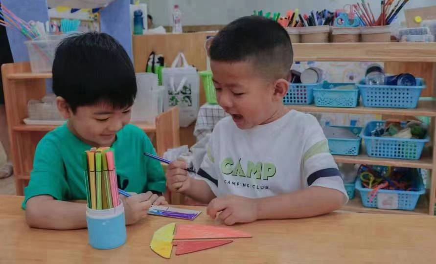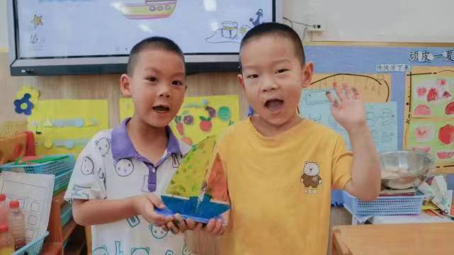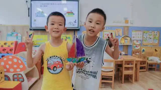 期間,“小浪花”實(shí)踐團(tuán)隊(duì)成員為小朋友們播放了科考船“東方紅三號(hào)”的介紹視頻。視頻中,東方紅三號(hào)氣勢(shì)宏偉,精密的儀器匯集諸多尖端科技,完善的設(shè)備凝結(jié)無(wú)數(shù)海洋工作者的心血。巍巍重器揮斥筆墨,在歷史長(zhǎng)卷中描繪泱泱中華的強(qiáng)盛,張揚(yáng)著科技強(qiáng)國(guó)的底氣與自信。以此為依托,實(shí)踐隊(duì)員們帶領(lǐng)小朋友合作涂鴉完成自己的小船模型,在小朋友們懵懂的眼中放下屬于海洋的一葉扁舟,揚(yáng)起海洋夢(mèng)之帆,讓團(tuán)隊(duì)的行為成為燈塔,引領(lǐng)青少年探索海洋之路,推動(dòng)其順時(shí)代之所趨,向海而興,為海洋強(qiáng)國(guó)的建設(shè)貢獻(xiàn)力量。