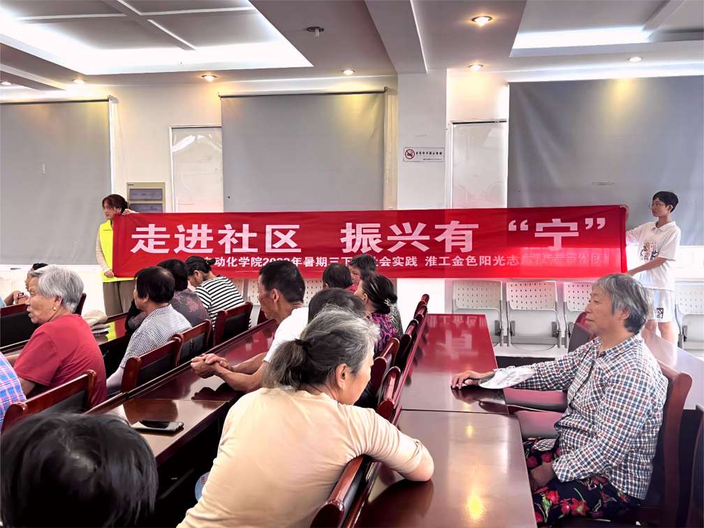 7月28日下午,淮陰工學院自動化學院“紅色江蘇行,青春‘智’閃光”暑期社會實踐團南京分隊在南京市棲霞區馬群街道芝嘉花園社區開展2023暑期“三下鄉”社會實踐之“走進社區,振興有‘寧’”主題實踐活動。