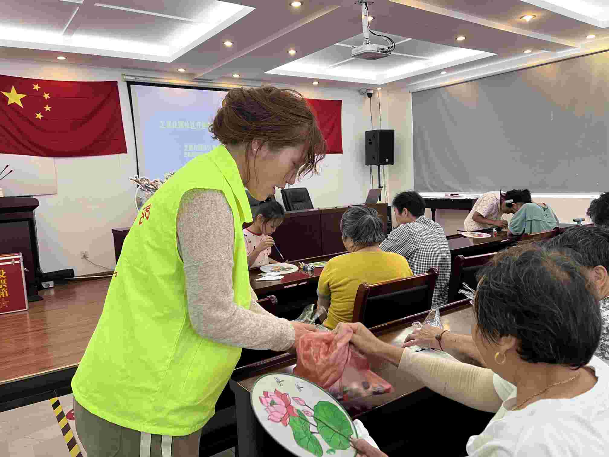 為豐富居民社區文化生活,實踐團聯合芝嘉花園社區共同開展繪畫團扇活動。活動現場,居民們在社區工作人員和實踐團成員的幫助下,畫得認真仔細,不時與周圍人交流繪畫心得。大家紛紛表示,手工繪制團扇活動熱鬧有趣,對于促進社區和諧非常有意義。
