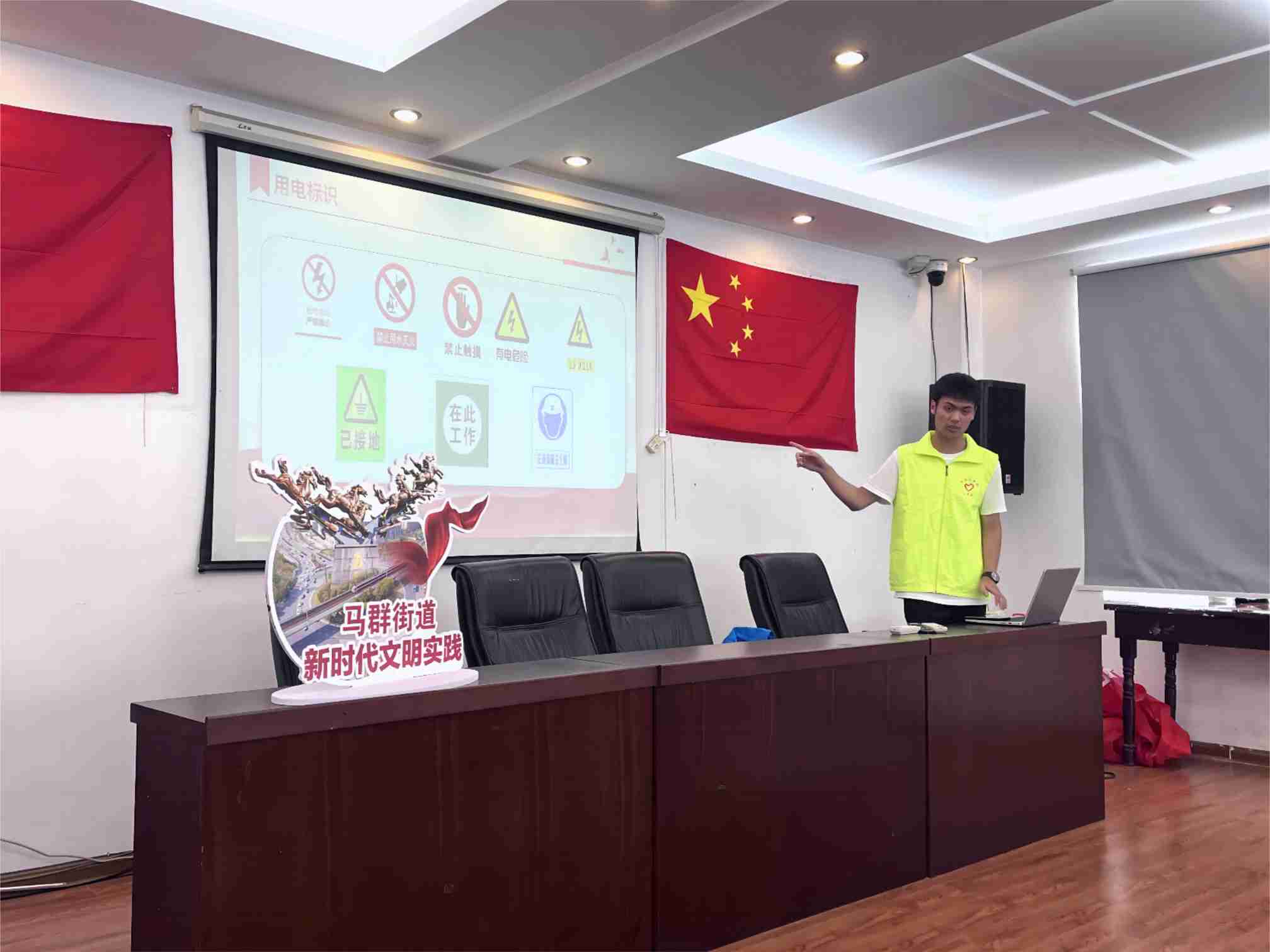實踐團成員深入芝嘉花園社區,發放安全用電知識宣傳資料,以ppt的形式向居民展示安全用電標識等相關知識及發生事故時的正確處理方式,通過集中宣講提高居民安全用電的意識,并對可能存在的隱患提出建議。