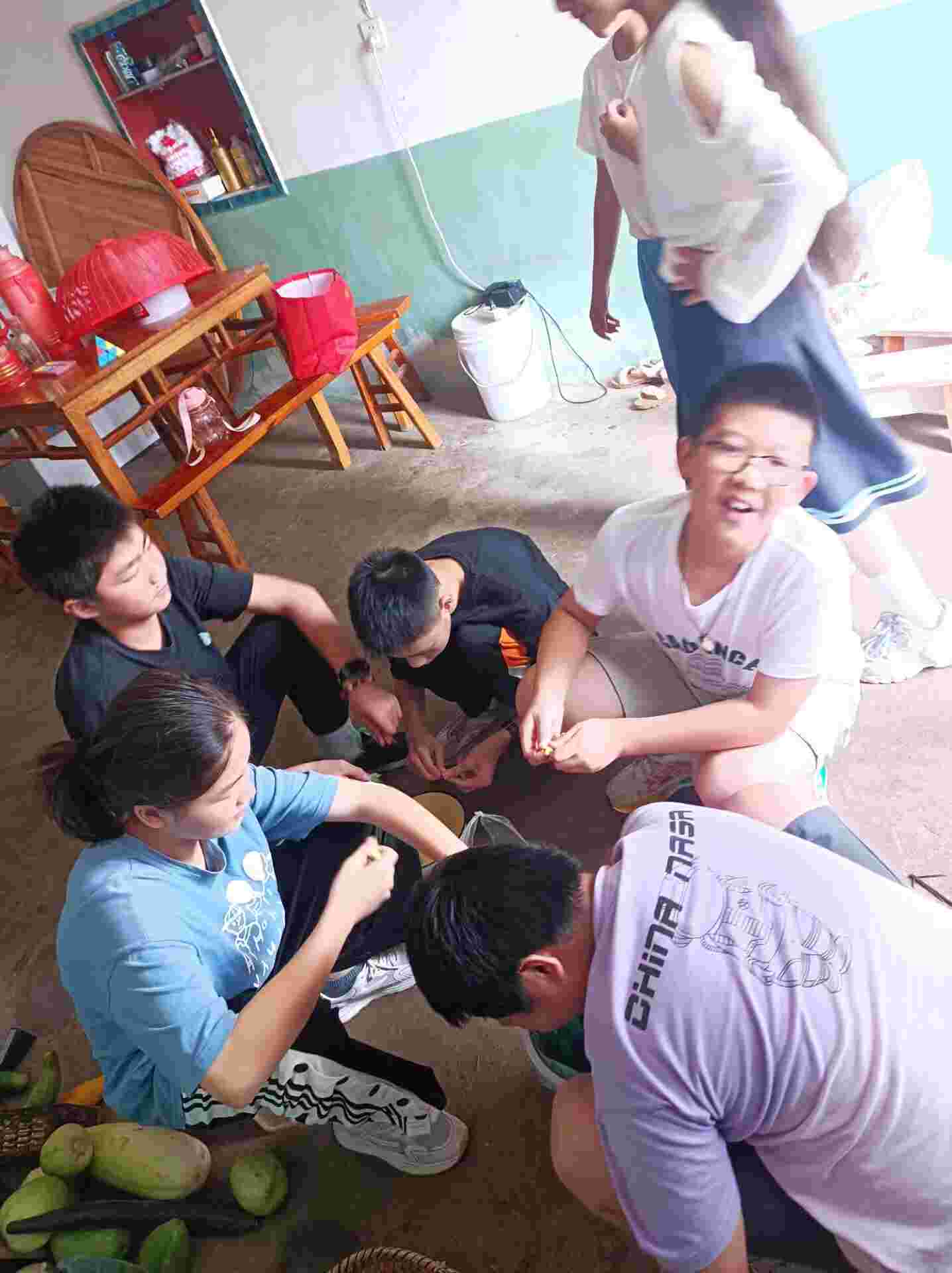 中午,大家一起剝新鮮的毛豆并共進午餐。這個互動的過程不僅增進了志愿者與孩子們之間的感情,也讓孩子們感受到了溫暖和關愛。此外,每個孩子還收到了來自團隊的特別準備的零食和學習用品禮包。孩子們拿到這些禮物時,滿懷感激和喜悅的笑容洋溢在臉上。