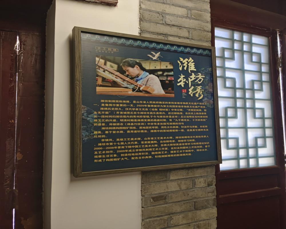 非物質文化遺產作為中華優秀傳統文化的重要組成部分,是中華文明綿延傳承的生動見證,新時代青年肩負新使命,要挺膺擔當,敢想敢為,守正創新,保護好、傳承好、利用好非物質文化遺產,延續歷史文脈,堅定文化自信,在非物質文化遺產的傳承和發展中貢獻青春力量。為了賡續工匠精神,傳承歷史文脈,用曲園聲音講好非遺故事,2023年7月2日,曲阜師范大學工學院“匠心筑遺 濰濰道來”實踐隊前往位于濰坊市十笏園內的的李金鳳刺繡工作室開展實地參觀走訪。