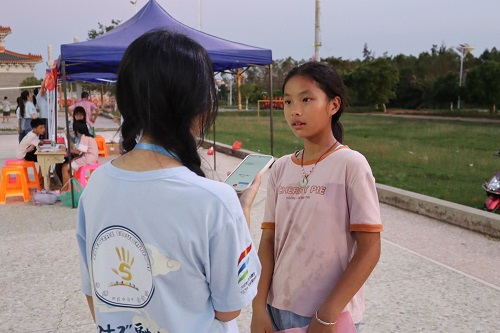 周靜怡同學(xué)在接受實(shí)踐隊(duì)隊(duì)員的采訪