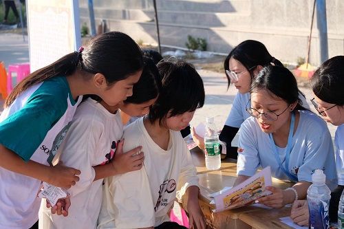 此前,“3+2”融合社會(huì)實(shí)踐隊(duì)在當(dāng)?shù)氐恼{(diào)神小學(xué)進(jìn)行文化支教和調(diào)研走訪活動(dòng),本次參與活動(dòng)的大都是來自調(diào)神小學(xué)的同學(xué)們。小朋友們拿著集章券,活躍在各個(gè)不同類型的活動(dòng)區(qū)域,每一個(gè)區(qū)域都能看到他們充滿好奇和熱忱的身影。