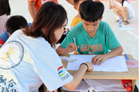 2023年7月21日,“3+2”融合社會實踐隊從鄉村開始,在調神村黨群服務中心的協助下,在臺風過境后重回調神小學門口的籃球場舉辦了主題為“心手相牽,有愛無礙”的融合宣導活動。