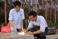 “3+2”融合社會實踐隊隊員指導大叔填寫問卷(由“3+2”融合社會實踐隊供圖)