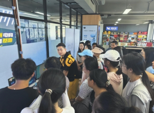 最后,實(shí)踐團(tuán)隊(duì)參觀了漳州跨境電商孵化園。團(tuán)隊(duì)成員從發(fā)展歷程、功能布局和產(chǎn)業(yè)規(guī)劃三個(gè)方面了解了園區(qū)。在現(xiàn)場(chǎng),團(tuán)隊(duì)成員們深入直播平臺(tái)后臺(tái),對(duì)直播運(yùn)營規(guī)則有了一定的認(rèn)識(shí)并親眼觀看到后臺(tái)的實(shí)時(shí)數(shù)據(jù)。成員們表示,“第一次如此深入地認(rèn)識(shí)到平時(shí)看到的直播是如何運(yùn)作的,感覺很奇妙。”