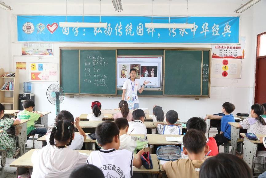 本次支教采取班主任負責制度,每班配備一位班主任和兩位副班主任共同管理班級。支教的特色課程包括傳統(tǒng)文化系列課程、趣味主課課程、科學文化系列課程等,同時穿插美術、音樂、體育等增加課程的豐富度。其中團課、橄欖球課和美術課倍受小朋友們的喜愛。“向遠筑夢“在本次支教中教學累計420課時,其中傳統(tǒng)文化類課程約50課時,志愿服務時長共計16天。