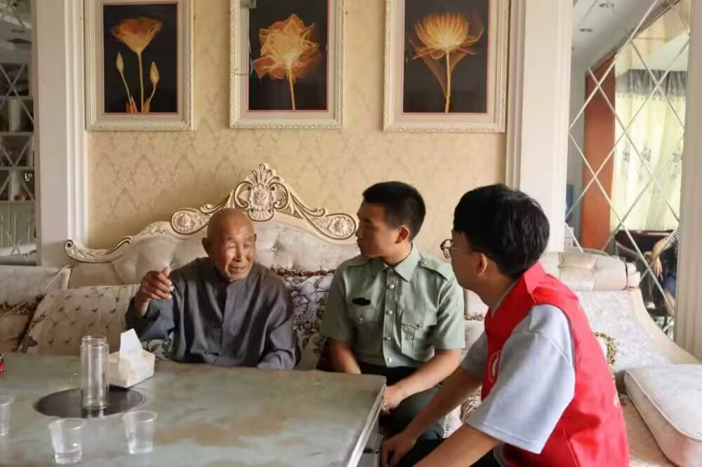 8月1日上午,在貴陽(yáng)市花溪區(qū)退役軍人事務(wù)局的協(xié)調(diào)安排與熱情幫助下,實(shí)踐隊(duì)隊(duì)員在建軍節(jié)當(dāng)日走訪慰問(wèn)了抗美援朝老兵陳忠才和熊?chē)?guó)祥,帶上慰問(wèn)物資到其家中。在實(shí)踐隊(duì)隊(duì)員當(dāng)中,有一位是剛退役的大學(xué)生,在八一建軍節(jié)這一屬于所有軍人的節(jié)日,該隊(duì)員也穿上了耀眼的軍裝,造就了青年一代的退役軍人與老一輩的退役老兵一次深刻的交談。