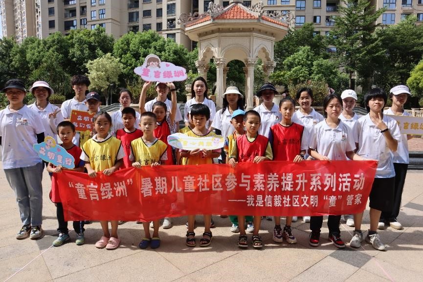 為推動新時代文明理念向低齡化普及,助力兒童健康成長,集美大學童言綠洲實踐隊于7月25日在信毅社區帶領社區兒童開展“我是信毅社區文明‘童’管家”暑期兒童社區參與素養實踐活動。