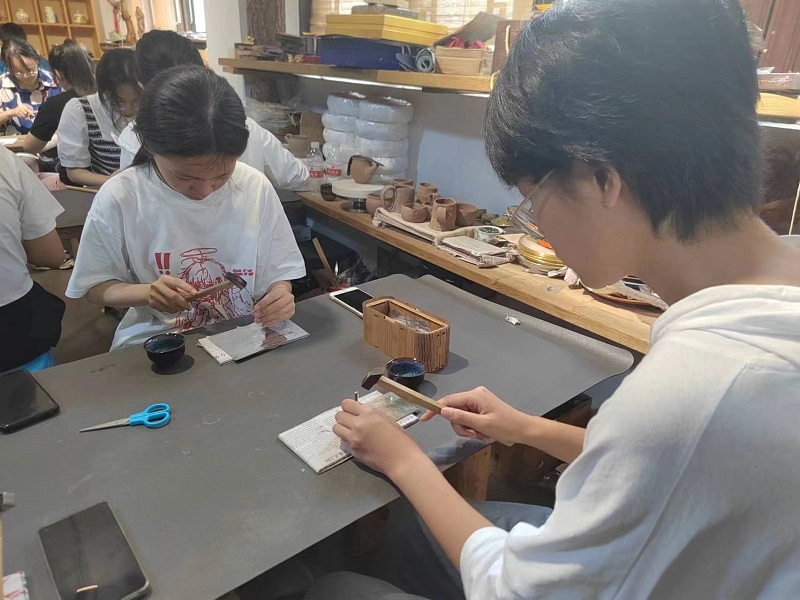 圖為體驗(yàn)錫鑲技藝 。 張湘 供圖