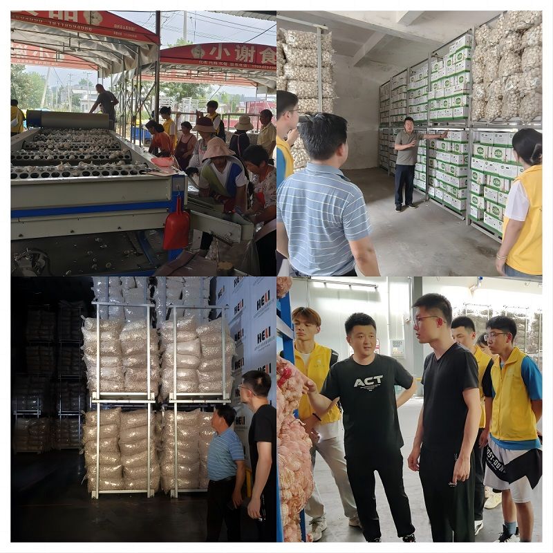 調(diào)研團(tuán)師生走進(jìn)當(dāng)?shù)佚堫^企業(yè)“天源蒜業(yè)有限公司”,在辦公室王主任帶領(lǐng)下,實(shí)地調(diào)研了企業(yè)全流程經(jīng)營管理業(yè)務(wù),感受到企業(yè)的標(biāo)準(zhǔn)化業(yè)態(tài)下的高質(zhì)量發(fā)展。團(tuán)隊(duì)師生還進(jìn)入到企業(yè)冷庫內(nèi)部,零距離感受了大蒜出入庫的整個(gè)過程。