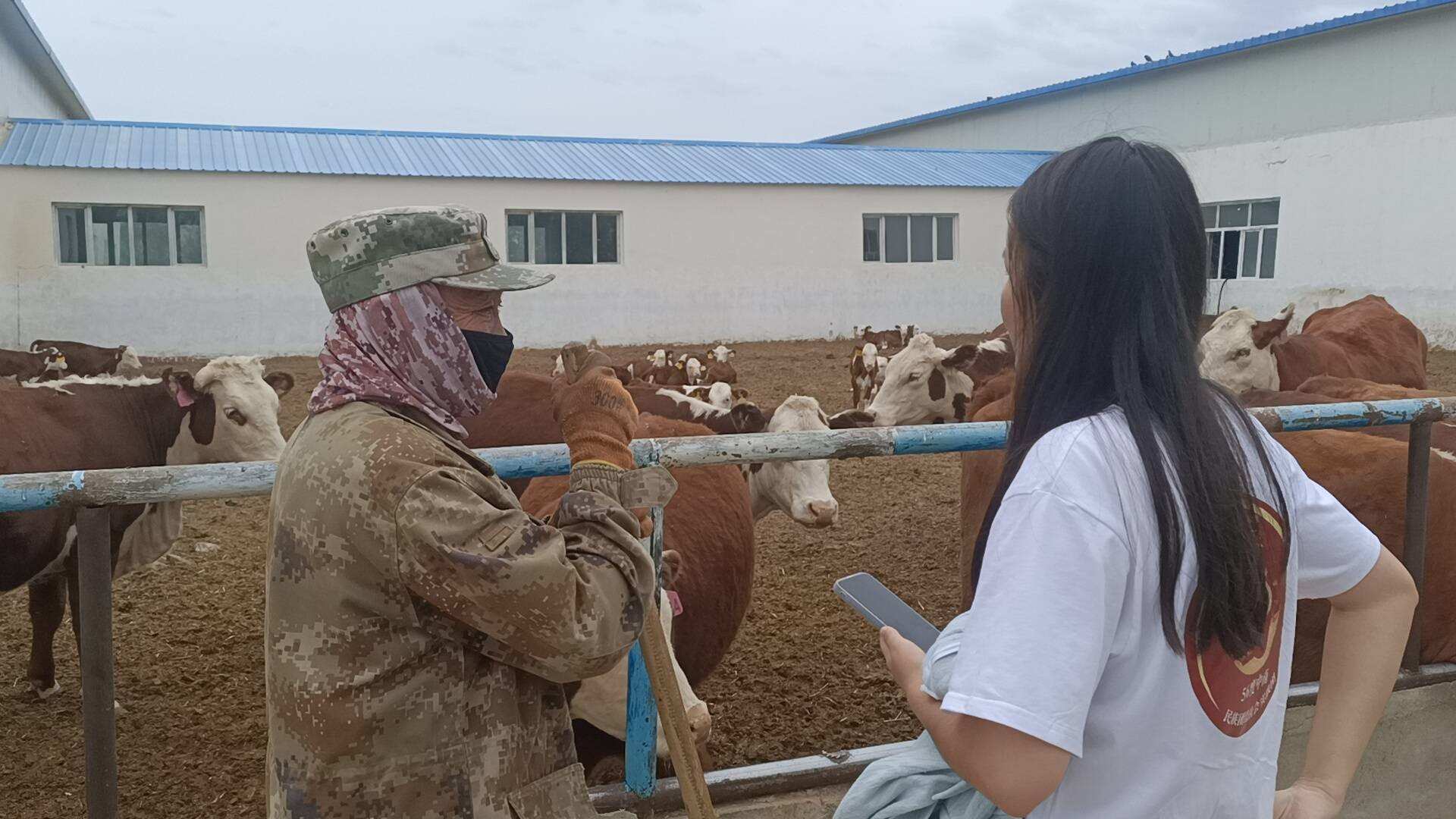 現今,巴里坤依舊采用自由放牧的傳統方式——讓牛群自由在草原上尋找食物和水源,這種方式不僅保留了游牧文化,也降低了飼養成本。但隨著工業機械化、生產現代化以及生態環境遭到人為破壞等情況,巴里坤縣游牧業發展面臨了新挑戰。由此,小隊成員到達健坤牧業有限公司進行調研,希望深入了解巴里坤畜牧業發展新情況,發現鄉村致富新策略。