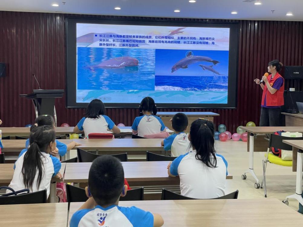 圖為實(shí)踐團(tuán)成員在愛心暑托班開展江豚保護(hù)宣講課程。通訊員 倪裕雯 供圖