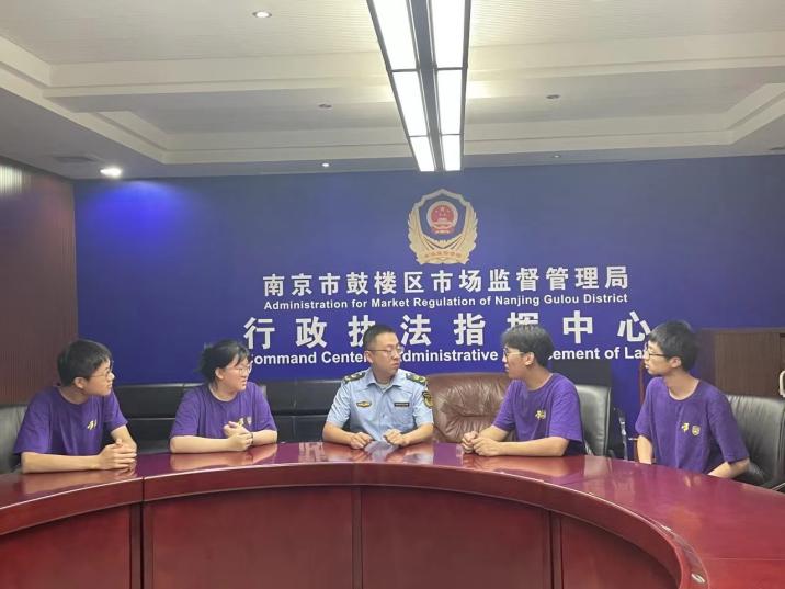 圖為實(shí)踐團(tuán)成員與行政執(zhí)法人員了解鼓樓區(qū)食品安全防控工作。通訊員 倪裕雯 供圖