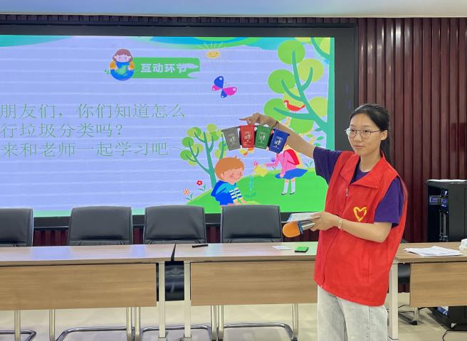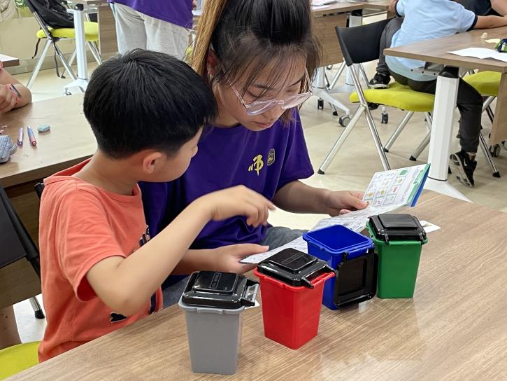 圖為實踐團成員與愛心暑托班小朋友一起垃圾分類。通訊員 倪裕雯 供圖