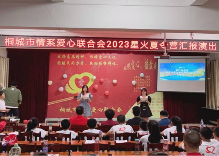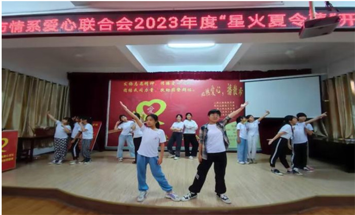 在支教的最后一個夜晚,情系助學(xué)中心二樓多功能廳燈火通明,歌聲嘹亮,一場主題為“踔厲承古,奮發(fā)啟今”并且充滿希望,朝氣蓬勃的匯報(bào)演出在熱烈進(jìn)行。