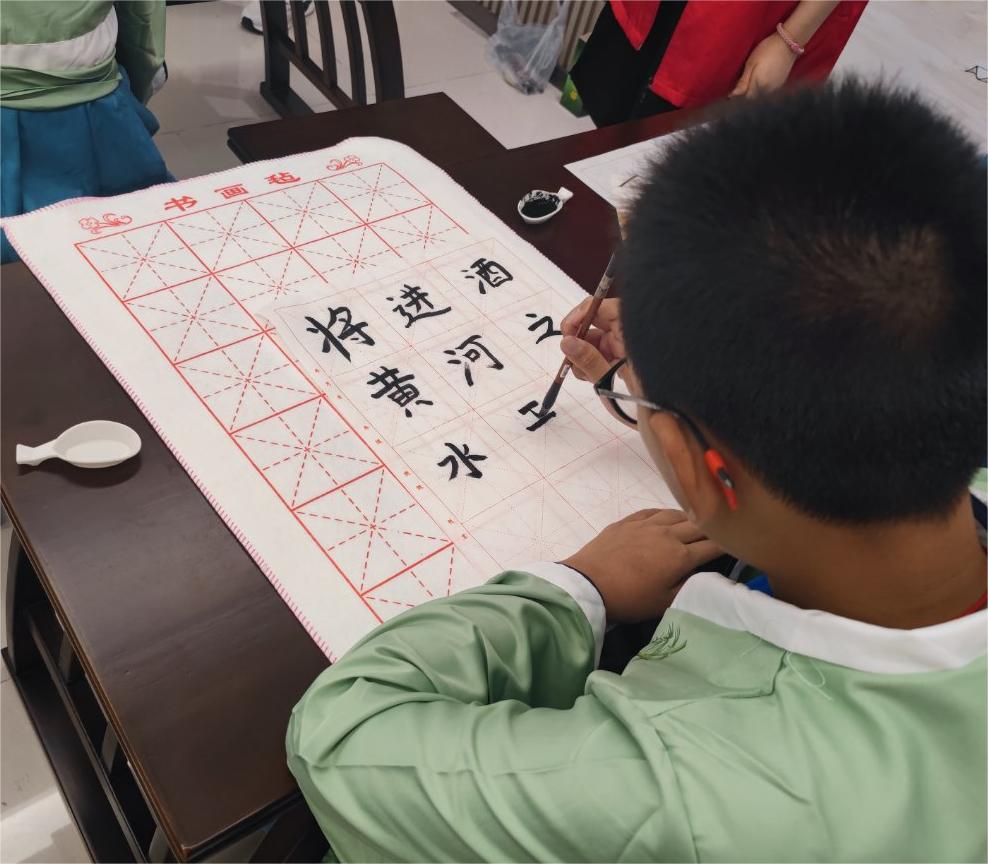 南京工程學(xué)院自動(dòng)化學(xué)院“問渠”楊柳文明實(shí)踐團(tuán)于7月31日前往南京市江寧區(qū)楊柳湖社區(qū)開展“中華典故與書法學(xué)習(xí)”社會(huì)實(shí)踐活動(dòng)。團(tuán)隊(duì)成員帶領(lǐng)孩子們學(xué)習(xí)朗誦了陶淵明《飲酒》(其五),孩子們身臨其境般在秋菊、南山、飛鳥等景物下,感同身受,賞析陶詩,交流陶詩。此外團(tuán)隊(duì)開展書法練習(xí)活動(dòng),由握筆矯正到練習(xí)點(diǎn)橫豎撇捺鉤挑折的手法最后臨摹詩篇,在一次次墨汁浸潤和墨香熏陶下,一起承接國學(xué),發(fā)揚(yáng)國學(xué),做好星時(shí)代國粹的傳承者。