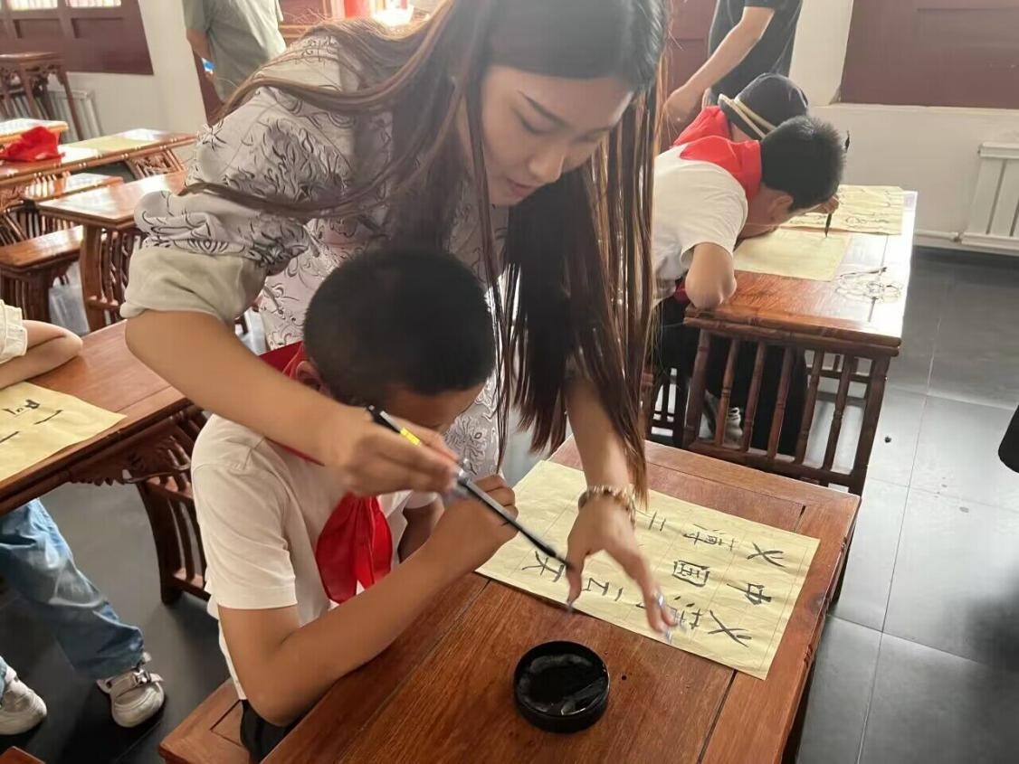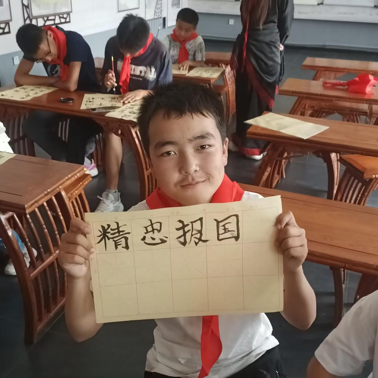 韓海洋同學表示:“除了愛國主義教育宣講外,我們還注重培養他們文明參觀的意識,養成保持和維護公共場所秩序的良好行為習慣。書法課一開始,我們這些老師還沒想到要教小同學們寫什么字,他們主動提出‘義薄云天’‘精忠報國’等漢字,這些小同學雖身處天山下的草原小鎮,但他們心胸寬廣,知識淵博,心系祖國,是國家的棟梁之材,我們收獲了很多喜悅與感動。”
