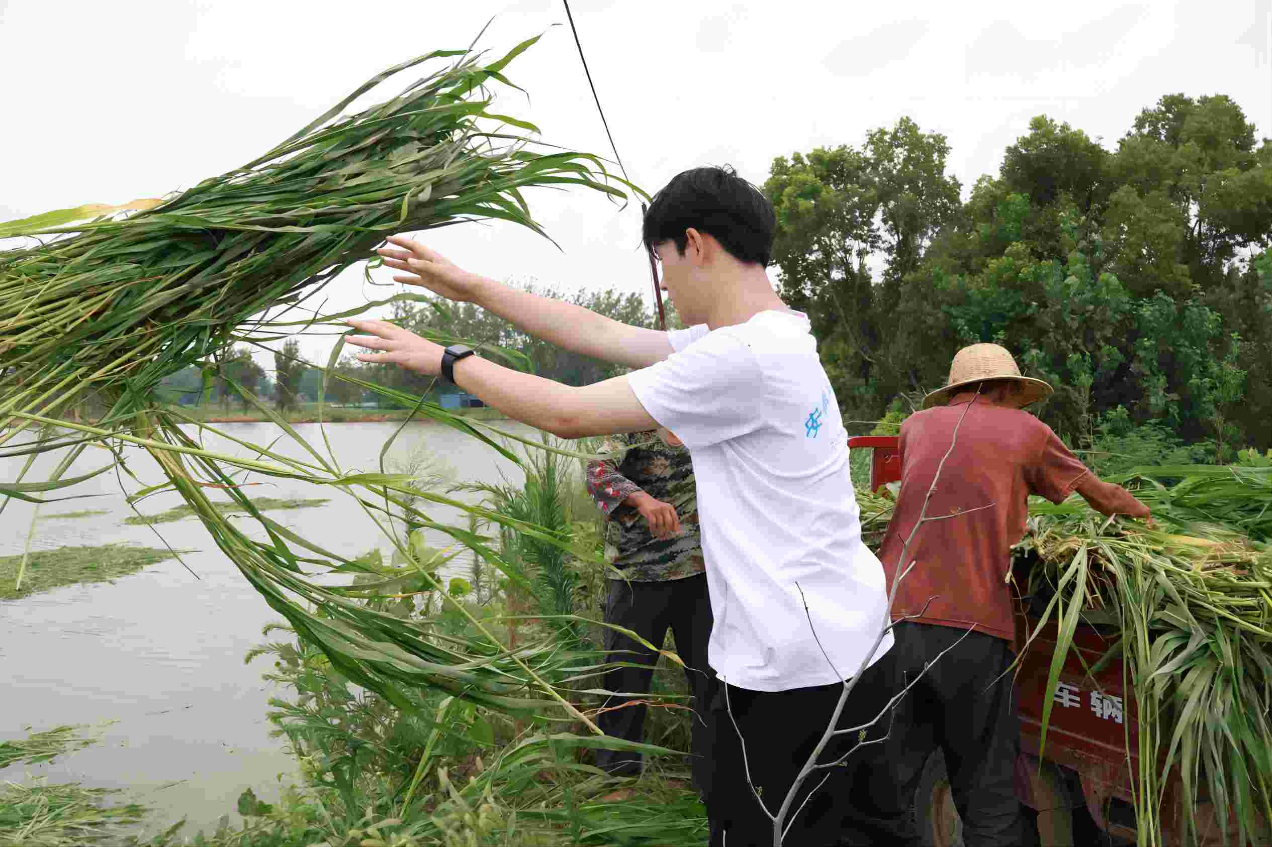 團隊成員鏟草裝車實踐團深入鳳臺縣新集鎮(zhèn)胡崗村的田間地頭。烈日炎炎,隊員們跟隨當?shù)剞r民前往田地割草喂魚、施肥補料,因地制宜地將農田與池塘相結合,充分利用當?shù)厣鷳B(tài)資源和現(xiàn)代科技,發(fā)展具有當?shù)靥厣霓r業(yè)形式,同時實行科技興農——從人工喂食轉變?yōu)樽詣油段蛊鳎粡目刂启~苗數(shù)量防止氧氣不足到用水車狀氧氣泵;從人工施肥進步到無人機施肥等,同時在銷售渠道上緊跟新時代步伐,積極開展網(wǎng)上直播賣貨等營銷方式。正如習總書記所說“青年人就要‘自找苦吃’。”只有勞動,才能更加貼近生活、貼近實際、發(fā)現(xiàn)生活的美。