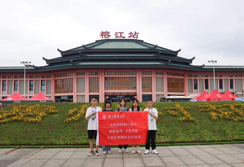 圖為隊(duì)員到達(dá)后在榕江站前合影,準(zhǔn)備開展社會(huì)實(shí)踐活動(dòng)。何智懿 供圖