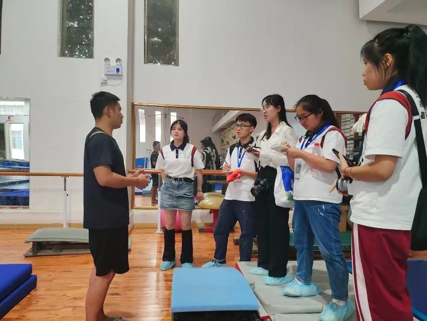 圖為工作人員向隊員講解榕江體操歷史。 黃杰 攝