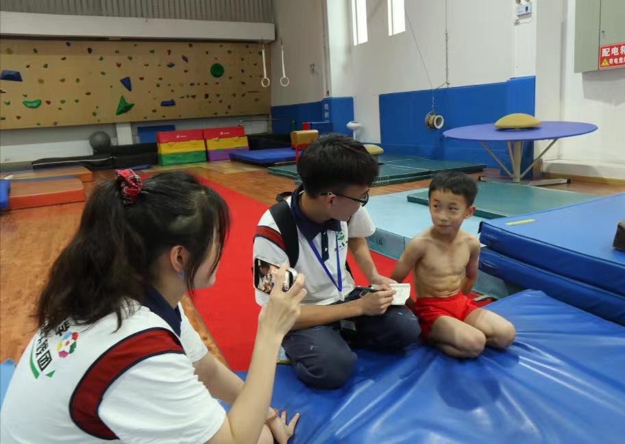 圖為團(tuán)隊成員對運(yùn)動員的采訪,了解他們的日常。吳顯維 攝