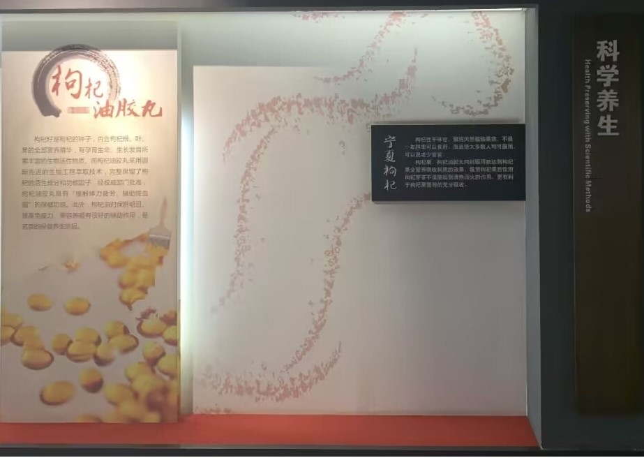 養(yǎng)生篇枸杞富含豐富的維生素、氨基酸、礦物質(zhì)等營養(yǎng)物質(zhì),具有滋補肝腎、明目益氣、抗衰老等功效,被廣泛應(yīng)用于中醫(yī)養(yǎng)生和食療中。寧夏枸杞博物館通過展示枸杞的營養(yǎng)成分、養(yǎng)生故事、養(yǎng)生藥膳等,結(jié)合傳統(tǒng)中醫(yī)藥養(yǎng)生知識,詳細了枸杞的養(yǎng)生功效和保健作用。
