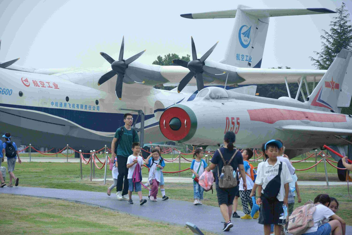 在南航的御風園,停放著數十架飛機,每一架都有著自己獨特的故事,見證著中國航空從無到有,從仿制到自主研發的壯闊歷程,也見證著一代代南航人為國家航空事業做出的卓越貢獻。在團隊成員的引導下,孩子們也了解到了它們背后的動人故事,有抗美援朝的功勛戰機米格15,有南海王偉烈士的同種機型殲8-Ⅱ,還有在建國70周年閱兵式上亮相的中程高速無人機。這些故事在孩子的心里烙下了深刻的記憶,在這場生動的愛國主義教育現場,在耳濡目染下總是能把這些瞬間印刻在自己的腦海里。
