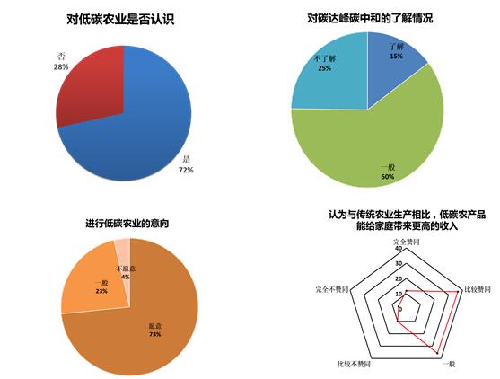 綜合分析,在實行碳達峰碳中和的目標下,各個地區,各個領域都在倡導環保,倡導低碳。但是在農業農村領域低碳知識的宣傳力度不夠,人們的環保意識不足,學習相關知識的途徑不多。但是大部分被調研者對低碳農業的未來發展還是存在著支持和信心的。