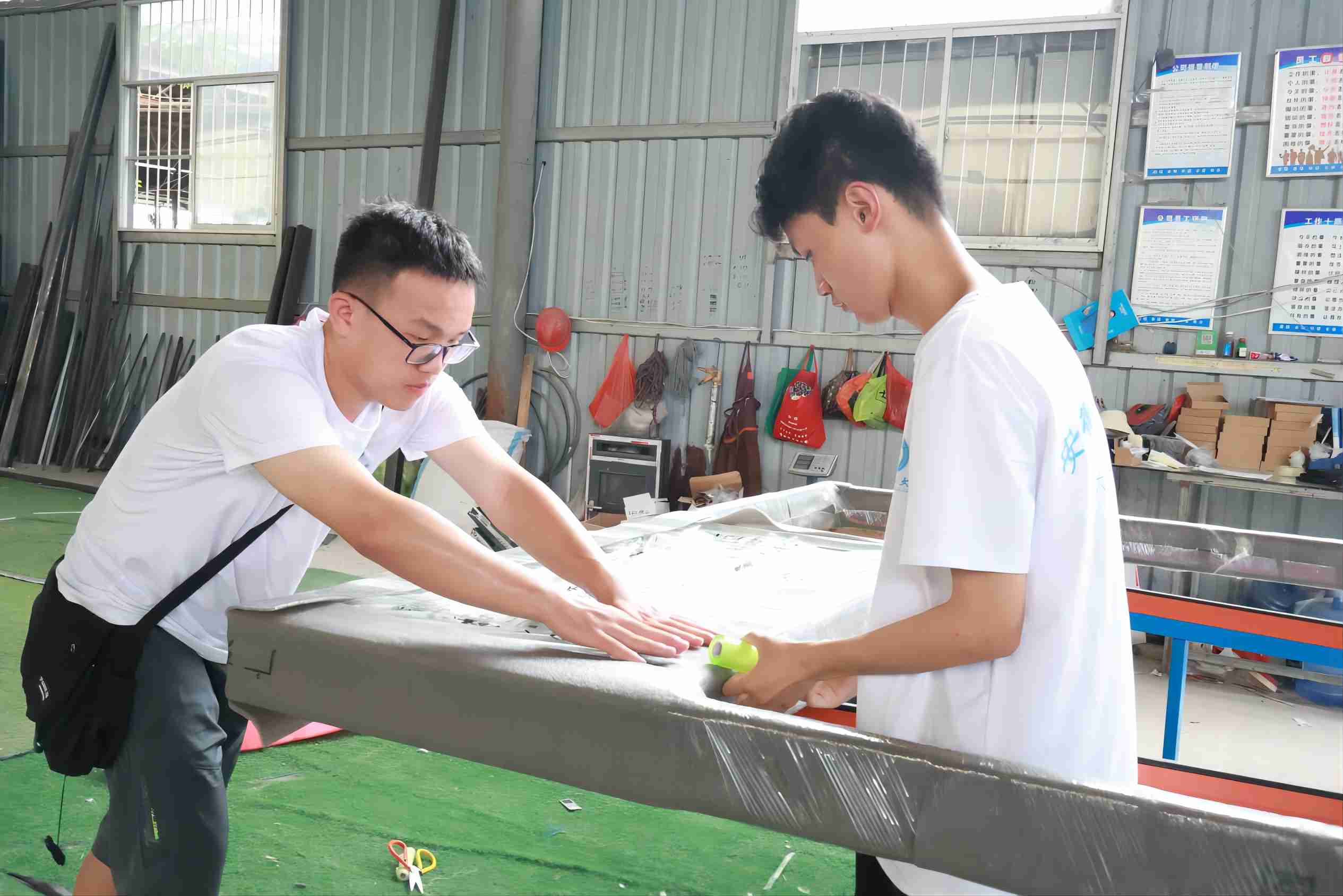 實踐團進入廠房內部,參觀了生產窗戶的流水線,崗位負責人對各崗位進行詳細講解。一堆堆鋼材需要經過剪切、焊接、組裝、包裝等多道工序才能變成產品銷售全國各地。“紙上得來終覺淺,絕知此事要躬行。”實踐團成員在工作人員的幫助下,親自動手操作實踐,體驗振興路上每一個普通人的勤勤懇懇,體會一線工人的不易。實踐團成員們表示:“自己如果不實際操作,這些看似很簡單的工作其實很不容易上手,這讓我們對鄉村工業發展有了新的體驗和認識。”